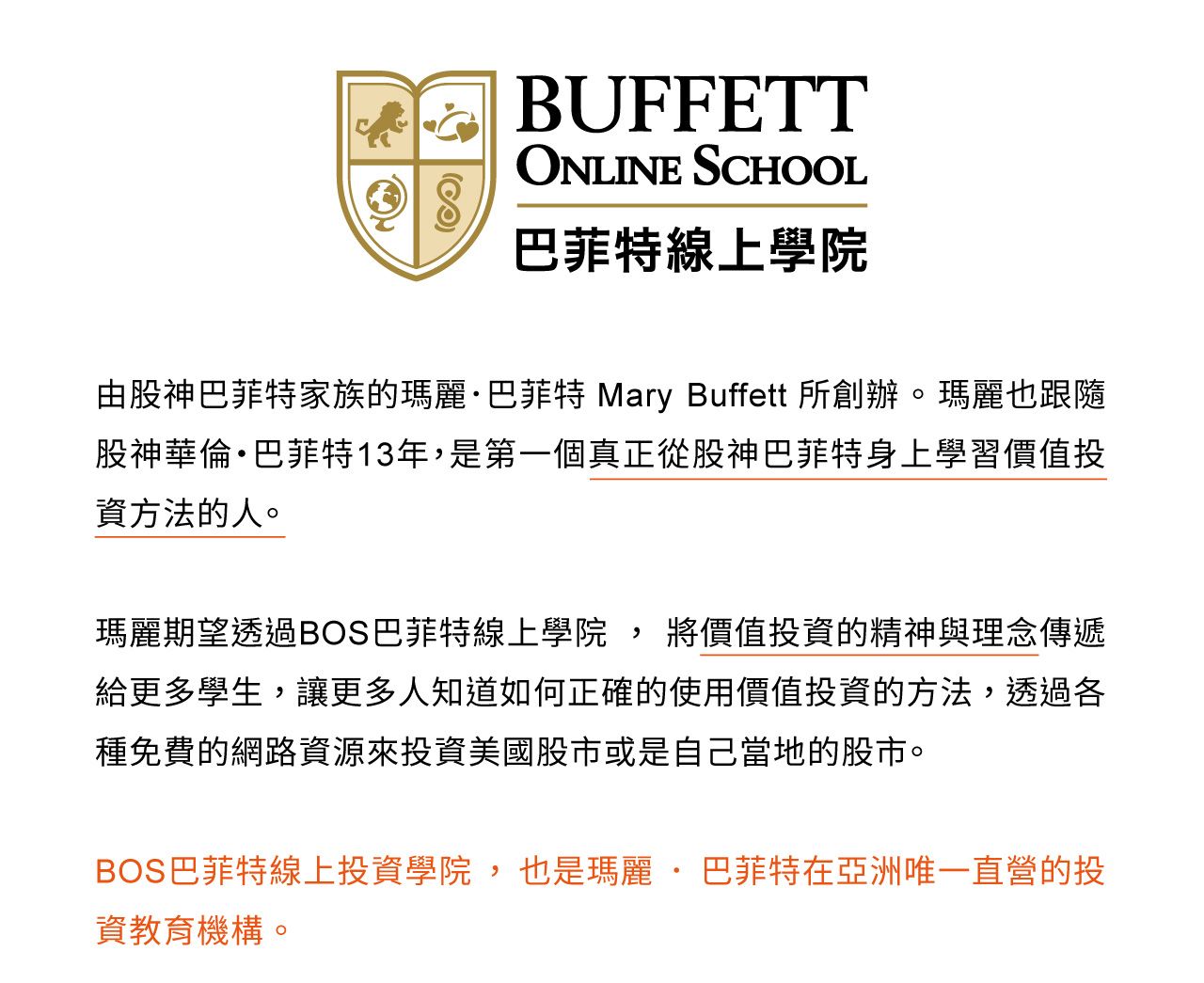 Buffett Online School 巴菲特線上學院 © 聚億國際新網路有限公司|統編:50904018 版權所有 All Rights Reserved.